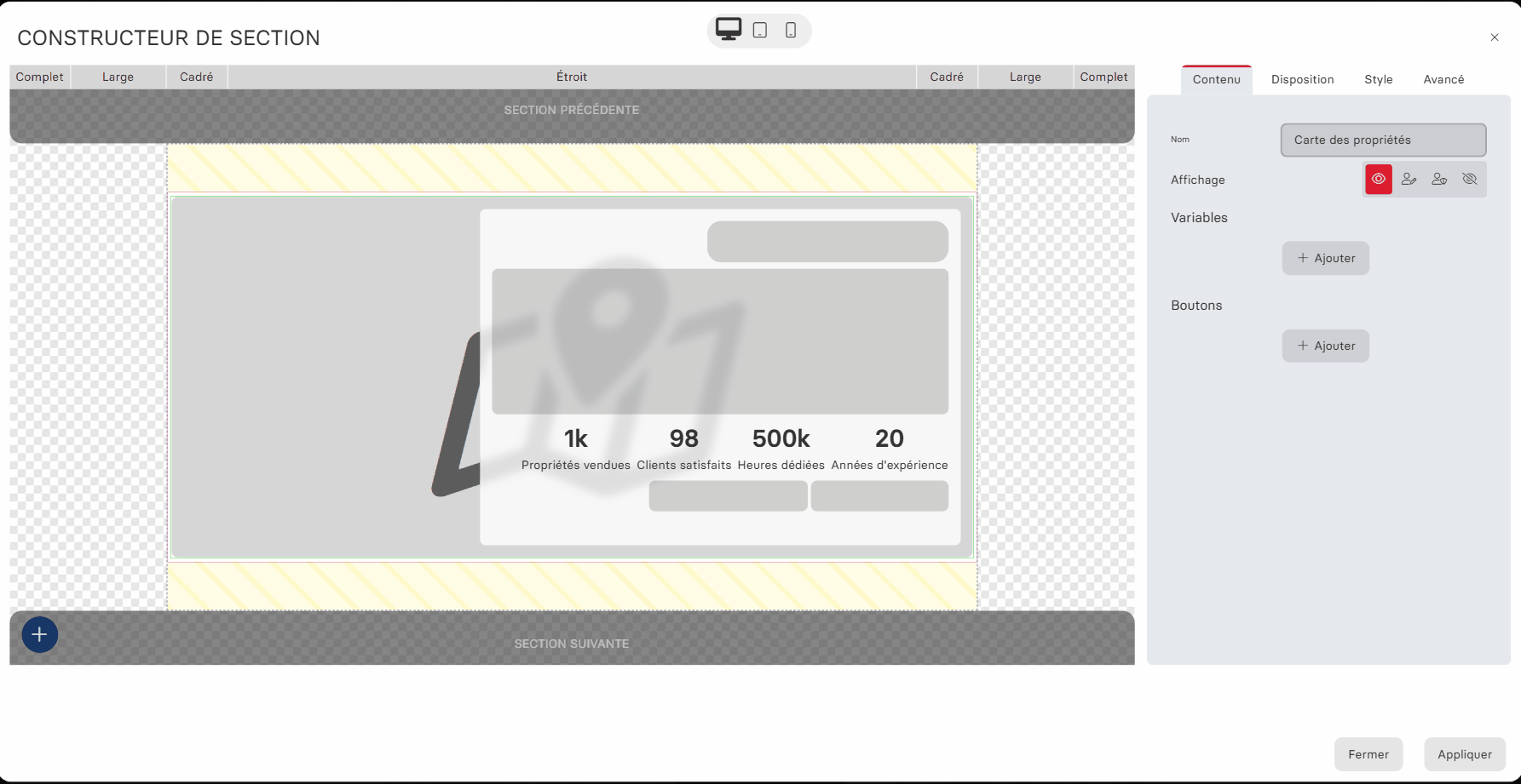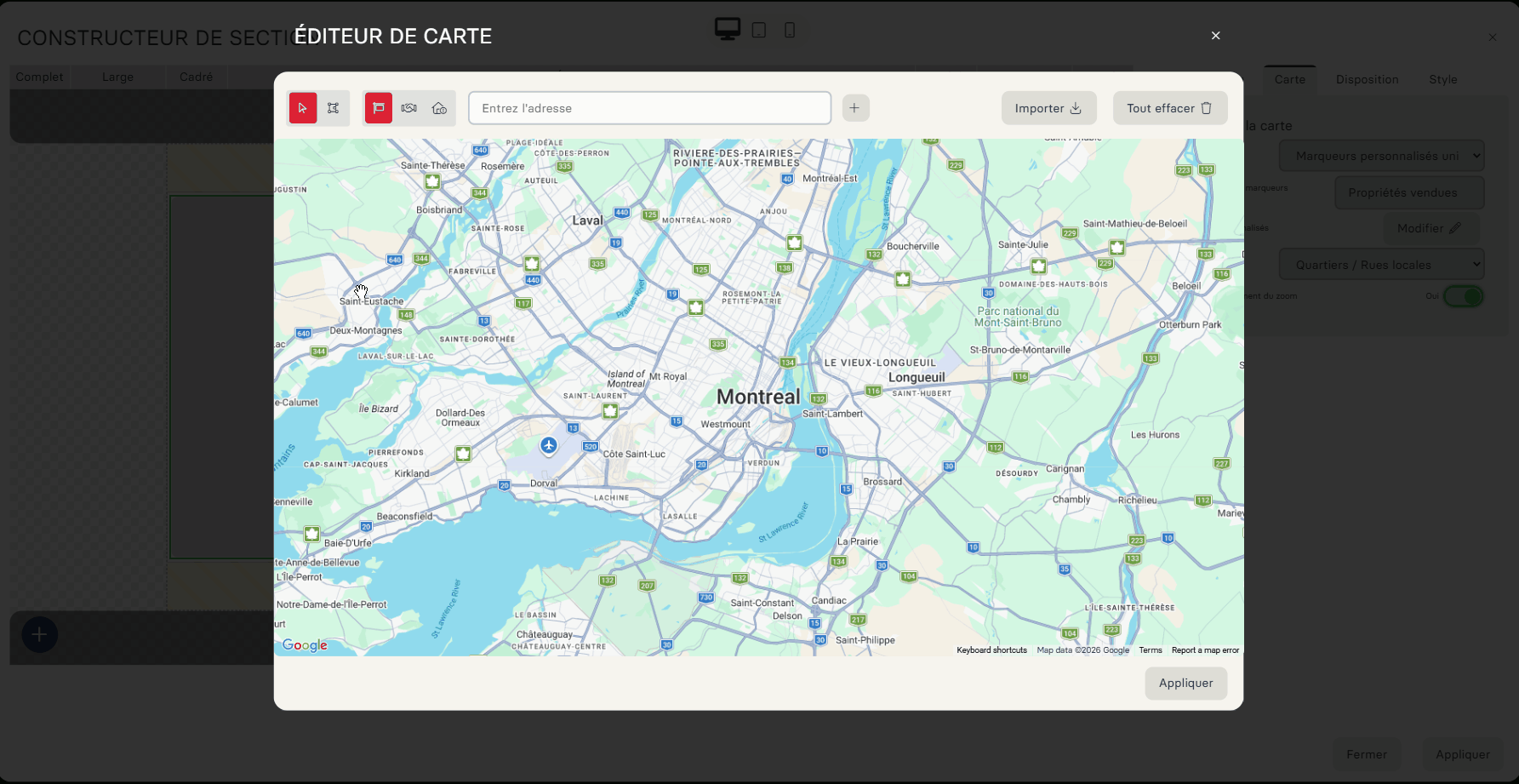 Cette procédure explique comment ajouter, déplacer et supprimer des marqueurs dans le module Carte de propriétés d’une section.